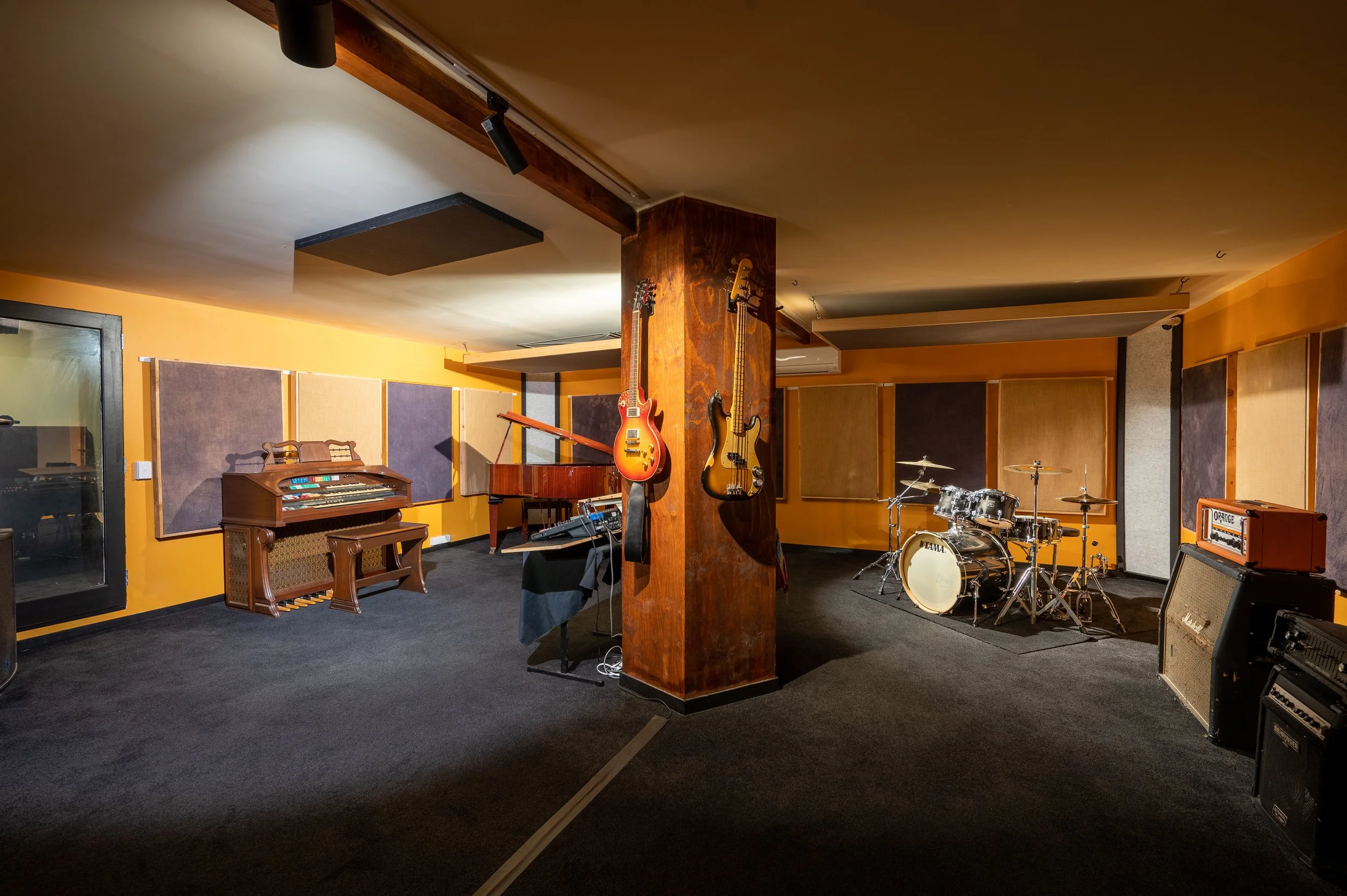 Fully equipped jam room with drums, amps and PA for rehearsals and live sessions